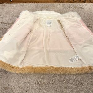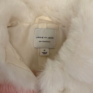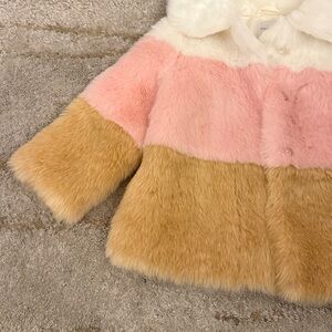 Girls Janie and Jack White, Pink, Tan Faux Fur Coat. 3 button closure. Like new! Size 2