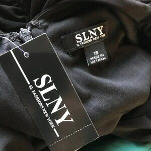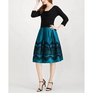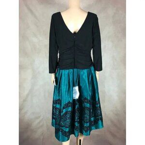 SL Fashions Flocked Black/Teal Fit & Flare Special Event Dress NWT 18
