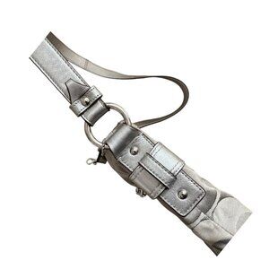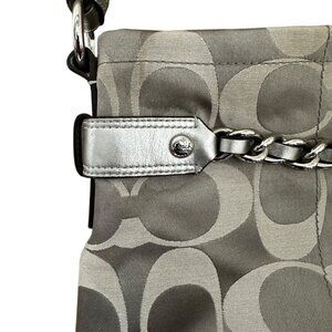 Elevate your accessory game with this stunning pre-loved Coach Signature Shoulder Bag in a chic silver finish. Featuring chunky silver metal chains and accents, this bag showcases the iconic Coach logo, making it a stylish statement piece for any outfit.