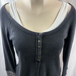 Free People Ski Lodge Waffle Knit Henley Thermal long sleeve shirt M