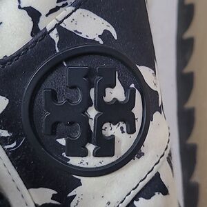 Tory Burch Orchard Combo/Black Sawtooth Leather Sneakers Ribbon Laces 8.5 VGUC