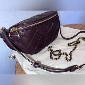 NWOT Tory Burch Fleming Soft Quilted Leather Burgundy Crossbody or Belt Bag