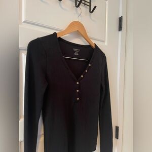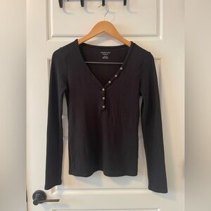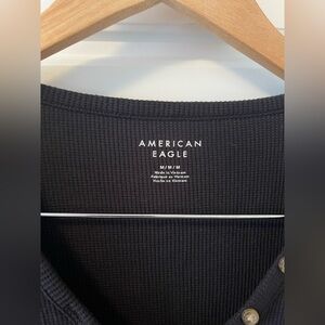 American Eagle Long Sleeve Henley T-Shirt | Black | M