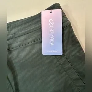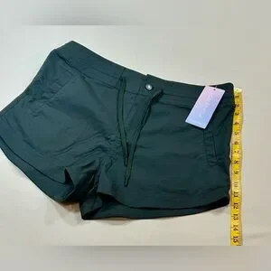 The CRZ Yoga Women's Size 14 Casual Athletic Shorts are a stylish and functional addition to your activewear collection. These solid green shorts feature a drawstring closure for a customized fit and are made from a blend of spandex and polyamide for comfort and flexibility. The athletic fit and sporty theme make them perfect for various activities like yoga, running, or even casual wear. The zip button detail adds a touch of style to these practical and versatile shorts.