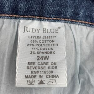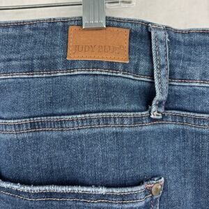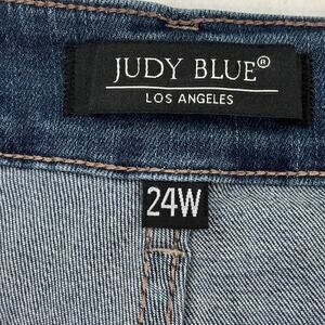 Judy Blue Jean Sz 24W Boyfriend Fit Medium Wash Distressed Raw Hem Stretch Denim