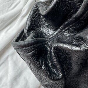 Agneau lambskin leather (The leather is pretty thick malleable, like a nice broken in motorcycle jacket.)