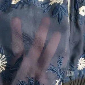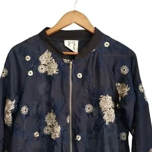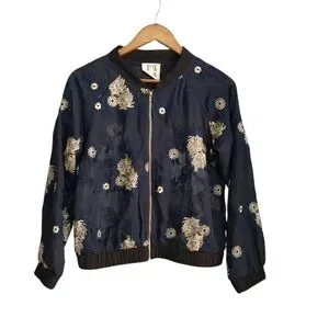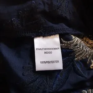 PPLA Starlit Woven Bomber Size Medium Mesh Navy Blue Embellished Zip Jacket