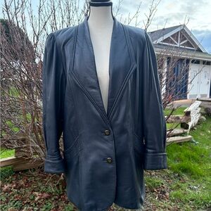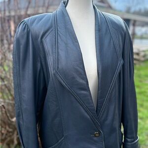 Vintage Mary Laurens genuine leather blazer in a rich deep blue tone. Sz M