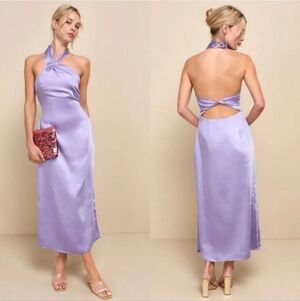 🆕️ Lulus Perfectly Sleek Lavender Satin Halter Slip Midi Dress