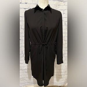 Ann Taylor LOFT Size Medium Womens Black Shirt Sheath Dress Pockets Long Sleeves