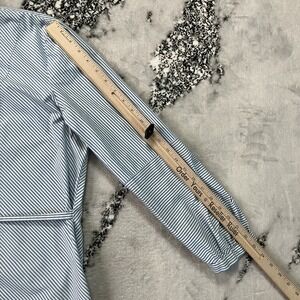 Ann Taylor Shirt Womens Sz XL Blue White Striped Long-Sleeve Blouse Tie Waist