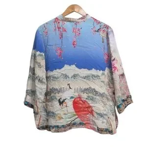 Citron Santa Monica Blouse Top Enhanced Cranes Forest Japan Cherry Blossom Asia