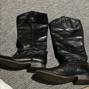FRYE size 9 Stylish black leather knee-high boots. Perfect for any occasion.