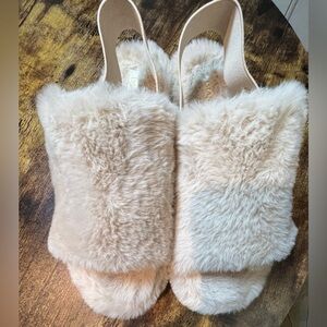 Womens IMAN fuzzy faux fur slippers. Like new condition. Only tried on. There’s no size marked in the shoe, they’re size 11. See length in inches.