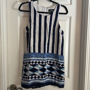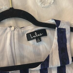 Lulus Multitask-Queen Ivory and Blue Print Shift Dress small blue white