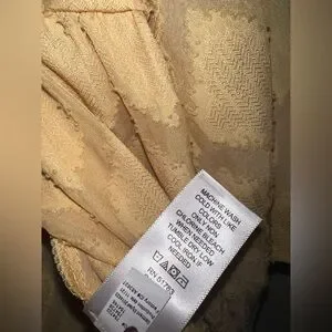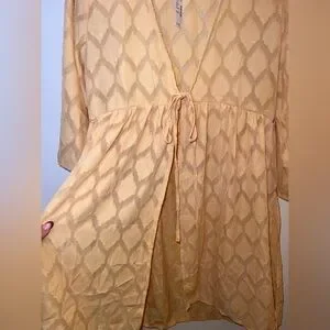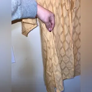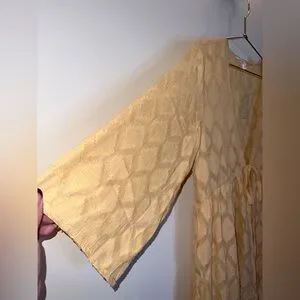 New with tags Maurices boho-style open front duster / tunic in a soft yellow / golden cream tone with an allover textured geometric pattern.