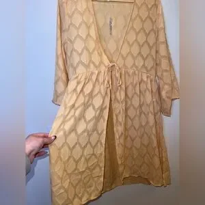 Maurices Yellow Boho Open Front Duster Tunic XS NWT Side Slits