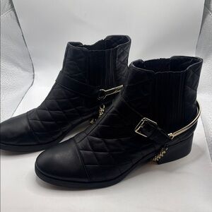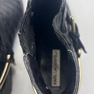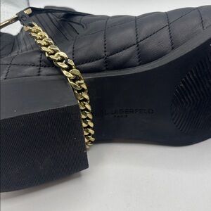 Karl Lagerfeld Paris Black Marisol Boots SZ 9.5 Leather Upper quilted 80s Vibe