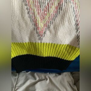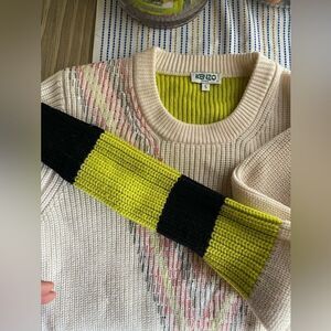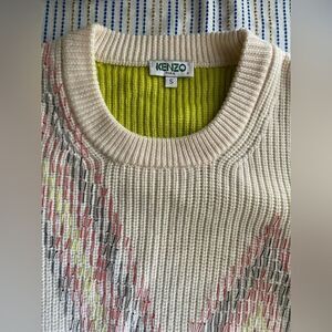 KENZO Sweater Womens Sz S Beige Wool Embroidered Multicolor zig zag lines