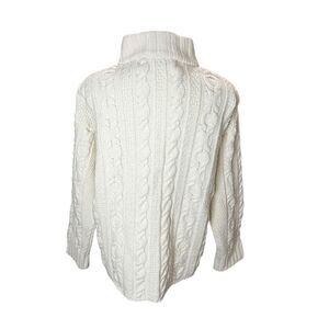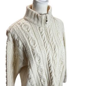 Inis Crafts Ireland Merino Wool Fisherman Cable Knit Zip Sweater Cream Small