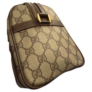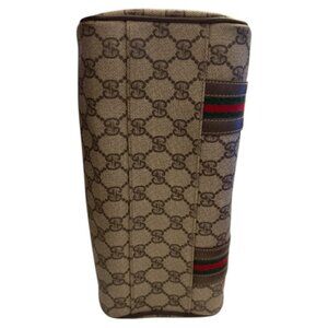 Authentic vintage Gucci Boston bag featuring the iconic GG Supreme monogram canvas, classic green-red web stripe detailing, and brown leather trim. A timeless, structured silhouette that remains one of Gucci’s most recognizable and collectible designs.