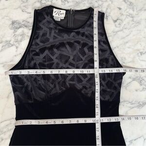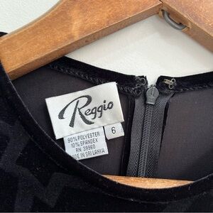 Vintage Y2K Reggio Whimsigoth Black Burnout Velvet Maxi Dress Sleeveless 6. It’s really hard to see all the cool detail but this dress is great! Geometric burnout print on the bust, front and back.
