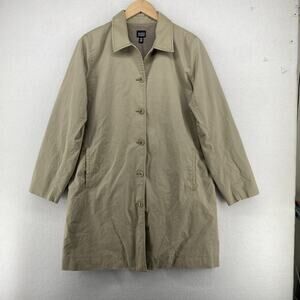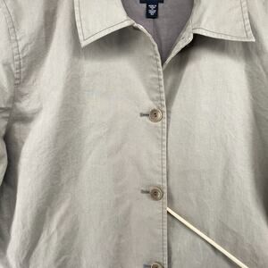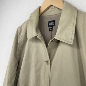 EILEEN FISHER Jacket M Twill Cotton Trench Coat Duster Button Front Gray