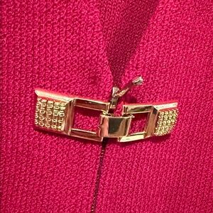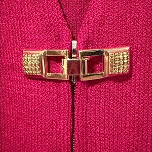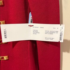 NWT St. JOHN Two Piece Suit Jacket 2 Skirt 6 ~ Red w/Gold Hardware Santana Knit