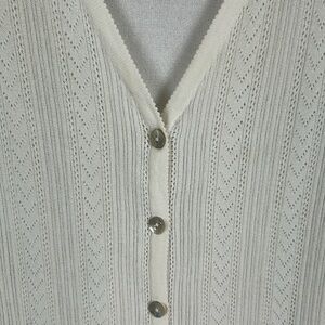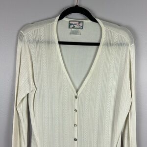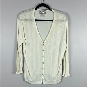 Vintage April Cornell Delicate Rayon Long Sleeve Cardigan Sweater Large Cream