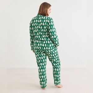 Cozy pajama set with tree pattern. Button-up top and drawstring pants. Perfect for lounging.
