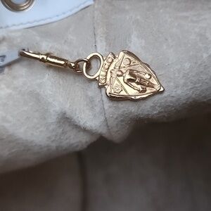 It has a drawstring bucket shape and is a shoulder / cross body style with lots of room. There is an exterior pocket in the front with a leather 'GG' embossed oval patch. It has gold engraved grommets at the top and gold engraved hardware throughout.
