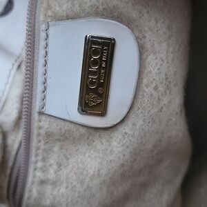 Inside, it has a beige lining that has flaked but isn't sticky. This is an issue with many vintage Gucci bags