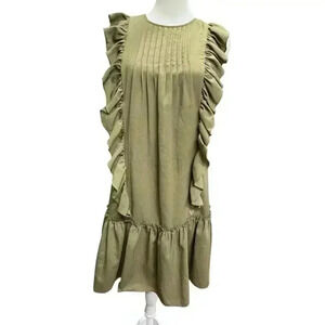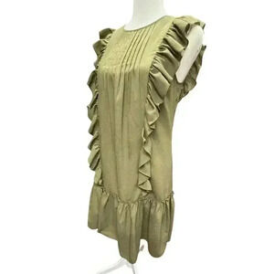 Banana Republic Khaki Green Sleeveless Sheath Ruffled Mini Dress Size XS