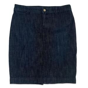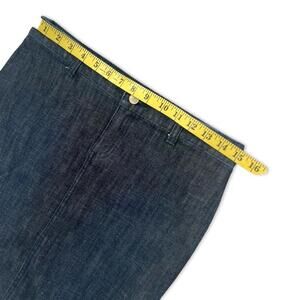 Dark denim with two back pockets and front zipper pressed clean as it’s never been worn . Size 2