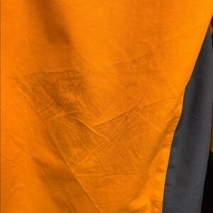 Experience ultimate comfort and style with the Men's High-Performance Jacket. Featuring a vibrant orange and gray design, this jacket is perfect for all your outdoor adventures. Has some stains on jacket see pictures. Beautiful Jacket.