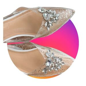 Shoes have vinyl uppers and vegan leather, cushioned insoles. She is Cheval shoes is a design company by wedding dress designer Hayley Paige. She released two very limited editions (25 pairs each style) to coincide with The Barbie Movie.