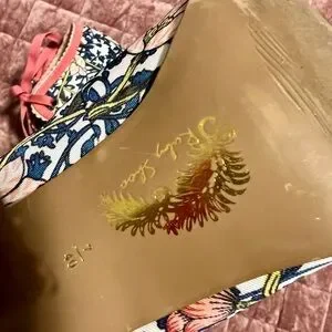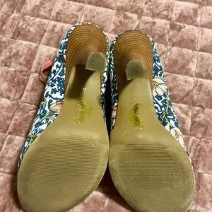 Step out in style with these chic floral patterned heels. Featuring a vibrant pink trim, these shoes are perfect for adding a pop of color to any outfit.