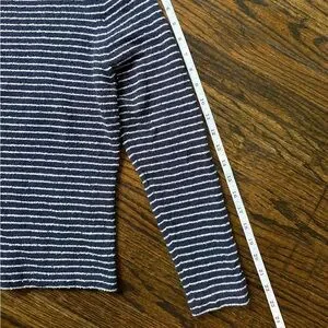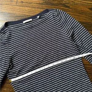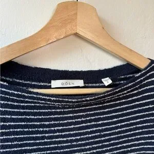 Doen, Boatneck Long Sleeve Top, Navy and White Striped, Small