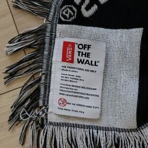 Vans Off The Wall throw blanket featuring a black and white checkered design with fringe edges, measuring approximately 61 x 56 inches and perfect for Y2K skate-inspired decor or cozy lounging.