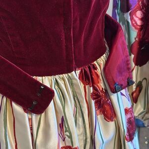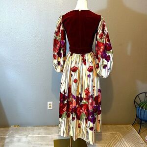 Vintage Victor Costa velvet satin floral dress with side pocket size 8