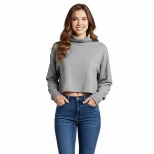 Project Social T Grey Drop Shoulder Ribbed Cuff Long Sleeve Crop Turtleneck Top