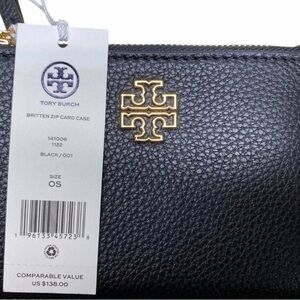 NWT Tory Burch Blake Bucket bag MSRP $398, Britten Zip Card wallet $138. Chic Tory Burch shoulder bag with matching pouch. Sleek black design with signature Tory logo. Perfect for versatile styling. Seriously downsizing my handbag collection please see my other listings - more to come too.