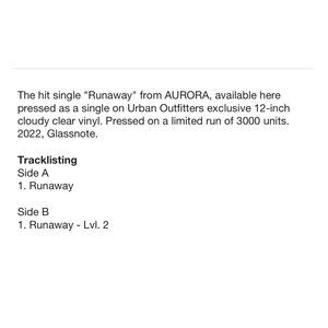 brand new and sealed Runaway AURORA 12 inch vinyl on exclusive urban outfitters CLOUDY CLEAR vinyl