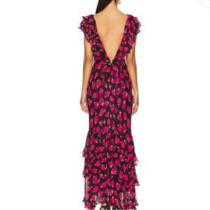 Rixo Rio Ruffle Maxi Dress in Vintage Rose Black - Size XS