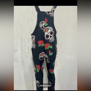 Lightweight skull,overalls with tie shoulders front pocket silky feel for summer