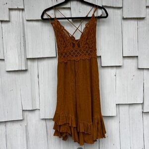 Free People Crochet Lace Trim Ruffle Hem Mini Dress Terracotta Orange Large