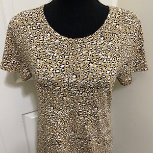 Keywords: J.Crew, Studio Tee, Leopard Print, Animal Print, Women's Top, Short Sleeve, Cotton Tee, Casual Top, Everyday Wear, Comfortable Tee, Stylish Print, Medium Size, Crew Neck