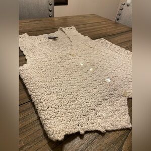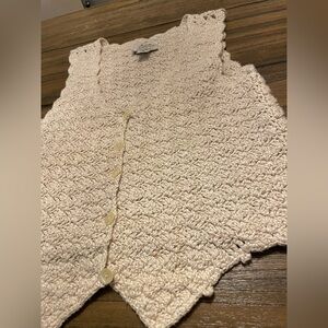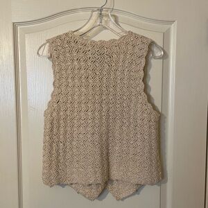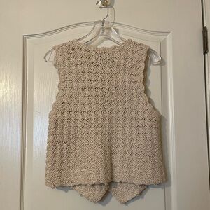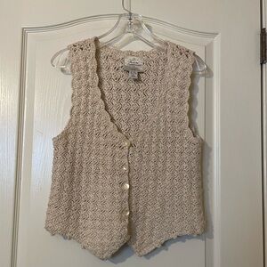 Vintage Express Beige Size XS Crochet Sweater Vest Boho Cottage Classic 90s EUC