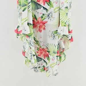 Tommy Bahama Maxi Dress L White Floral Tropical Ruffle High Low Vibrant Vacation