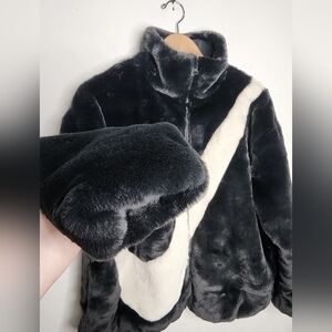 Nike Sportswear Faux Fur Jacket Black Full Zip Women’s Medium